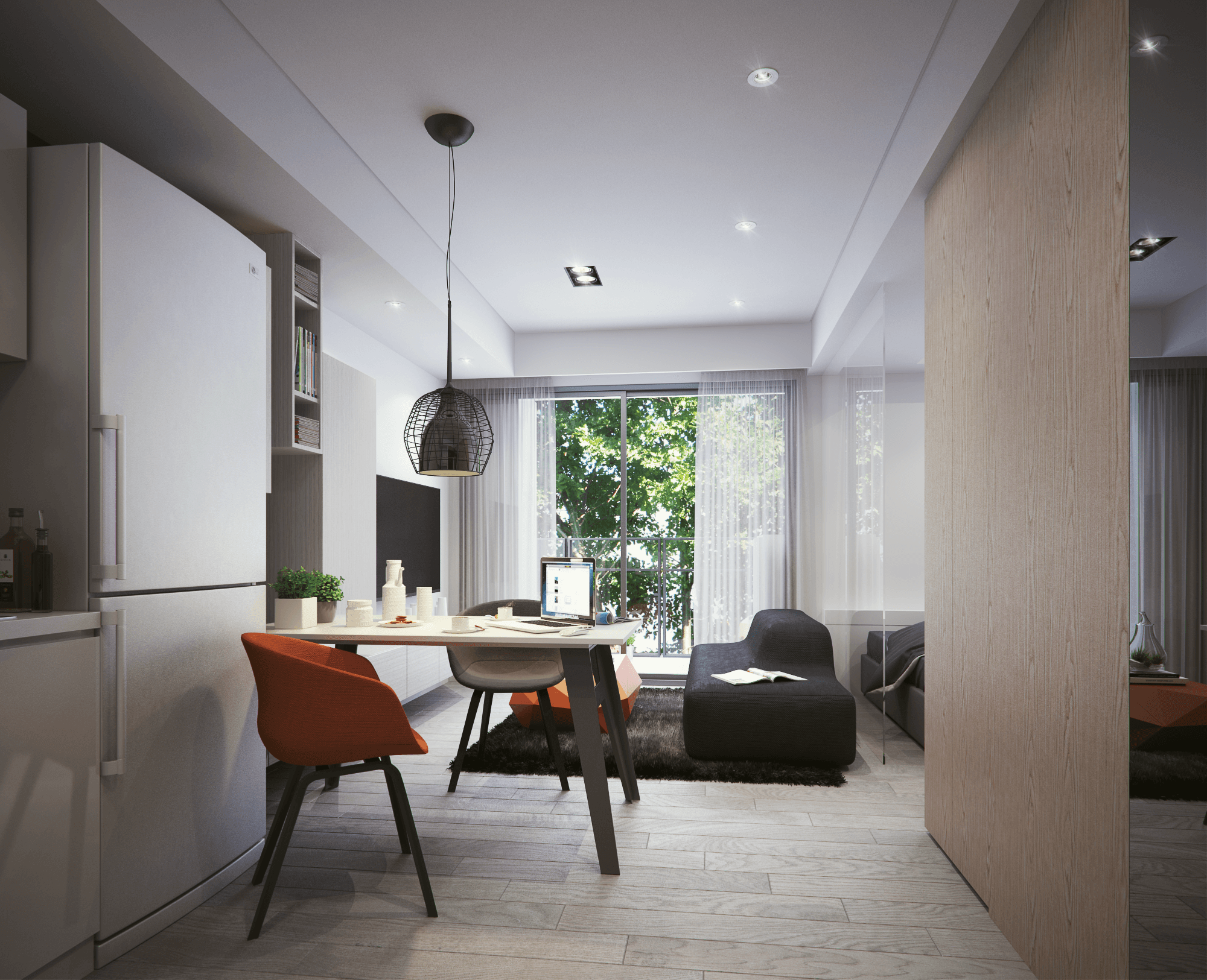 在都市裡最大的奢望就是綠意,不大的空間卻有著偉大的任務,新生的寶寶即將在完工後一起住進來,所以每個角落都要思考到寶寶!沒有多餘的隔間;沒有傷人的銳角;只有帶著綠意的採光、穿透的視線與放大的空間尺度,有限的空間與有計畫的思緒,唯一的堅持就是品味。