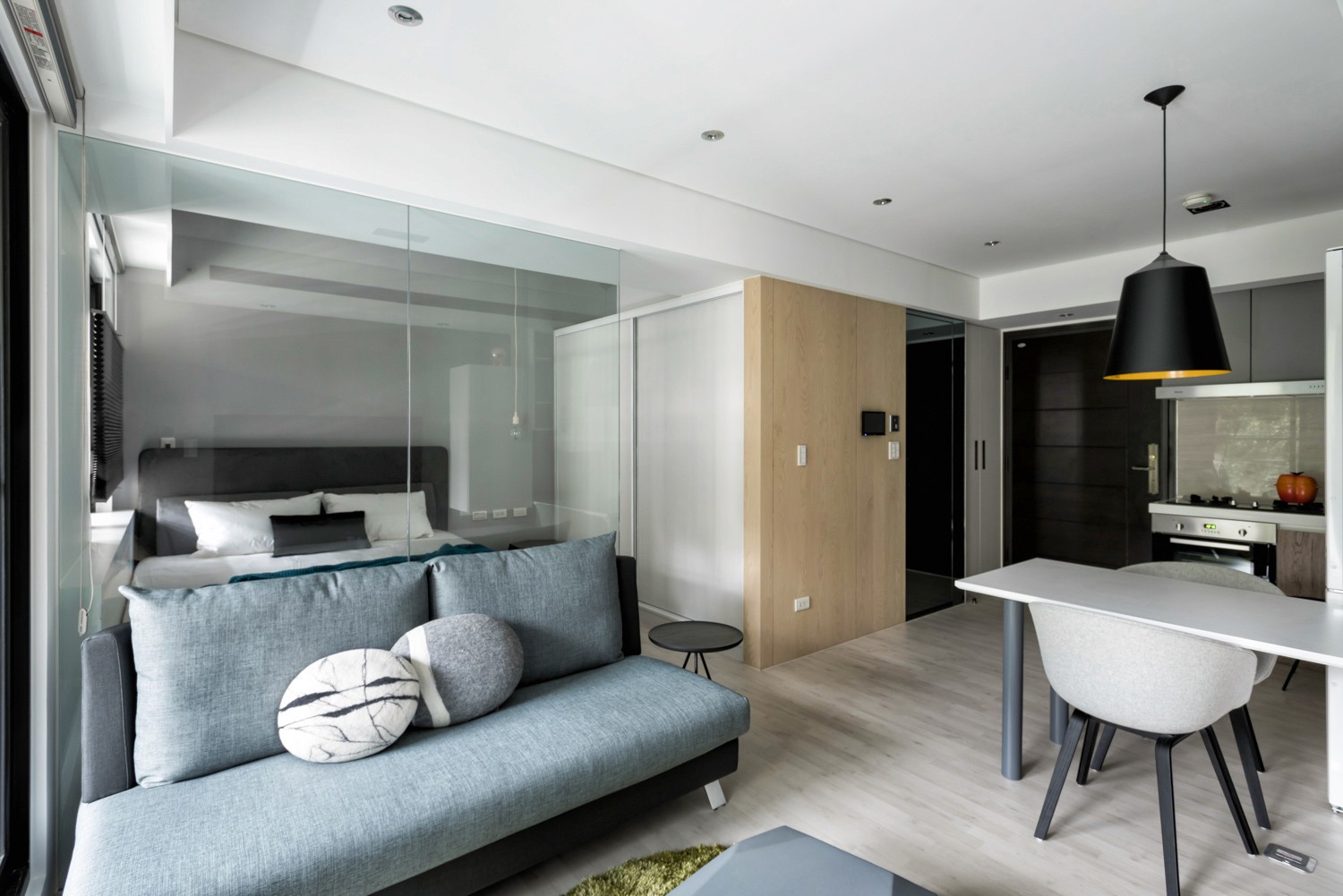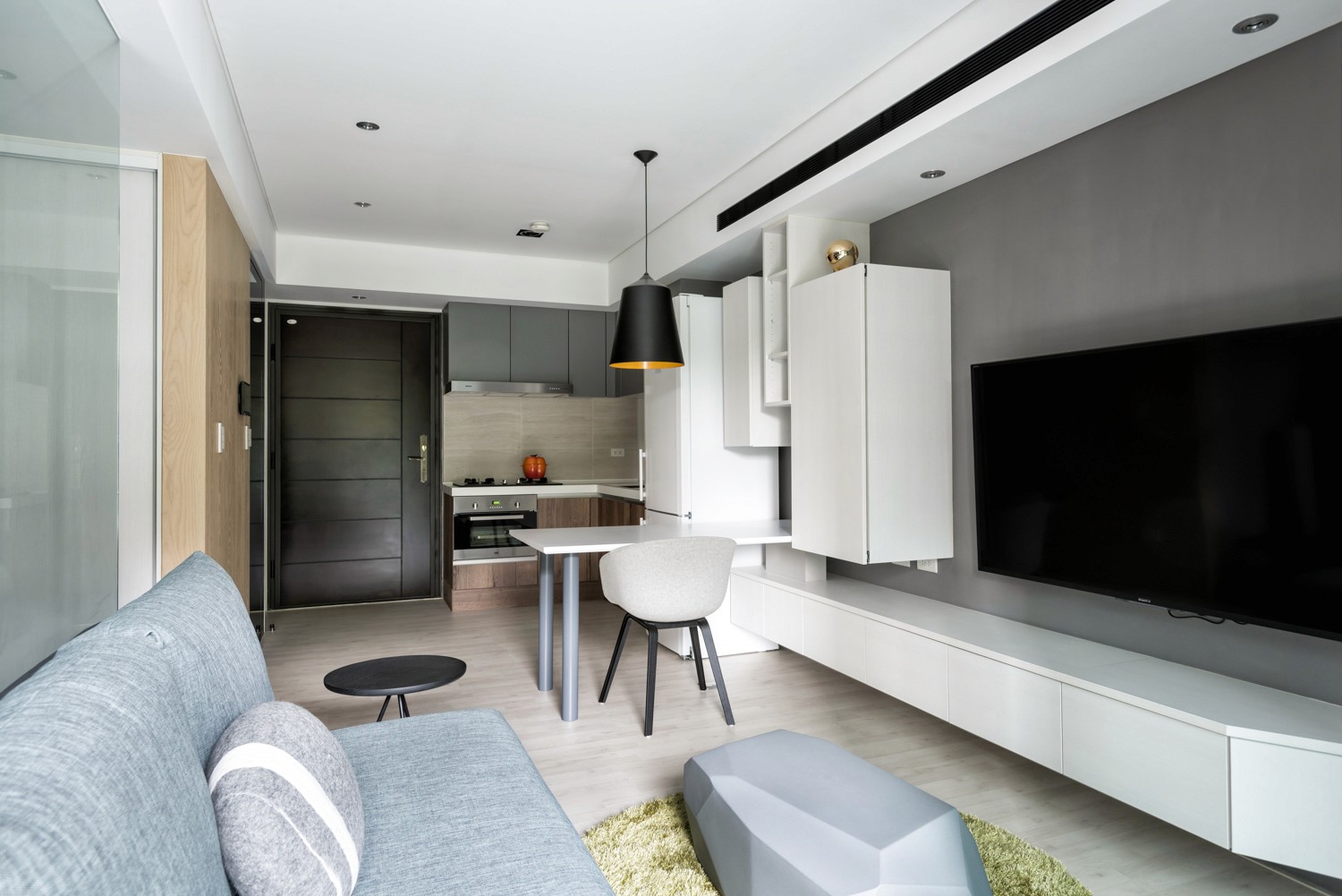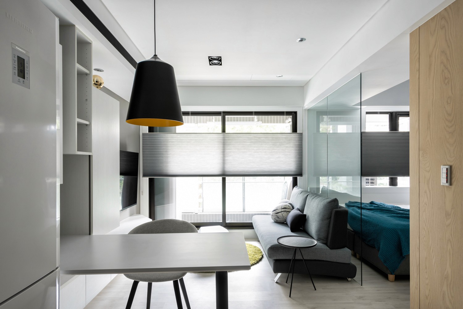 比例、色彩、大小都是構成品味的要件,往往缺了一種就會變了調,整個空間選擇了大量的白色與灰色,制訂了沈穩的氛圍;家具選用了設計感十足的款式,加分了比例與色彩,因此我們從色彩設定到家具選定都作足了功課,(不讓品味因空間小而走調!)