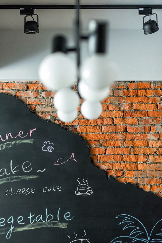 氛圍上歷史又現代,古早歷史紅磚交織著黑板刻畫現代生活足跡,